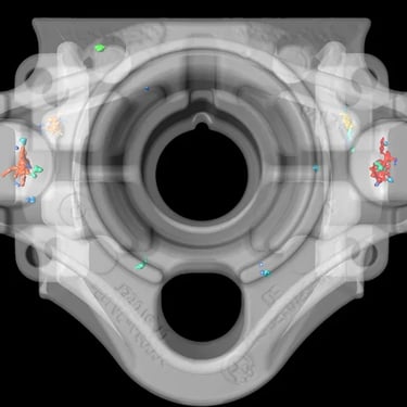 Part-to-CAD Comparison sử dụng dữ liệu quét CT để so sánh trực tiếp mẫu sản xuất với thiết kế CAD gốc, đánh giá sai lệch hình học, độ co rút hoặc biến dạng. Kết quả được thể hiện dưới dạng bản đồ màu dung sai giúp kỹ sư nhanh chóng nhận biết các khu vực vượt giới hạn cho phép và thực hiện điều chỉnh thiết kế khuôn, thông số ép phun hoặc quy trình sản xuất, đảm bảo sản phẩm đạt tiêu chuẩn trước khi sản xuất hàng loạt.