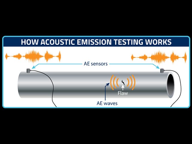 Acoustic Emission Testing là phương pháp NDT dùng để phát hiện khuyết tật thông qua sóng âm phát ra từ bên trong vật liệu khi nó chịu tải trọng hoặc ứng suất. Kỹ thuật viên sử dụng các cảm biến nhạy để ghi lại các xung âm (acoustic bursts) phát ra từ những hiện tượng như nứt gãy, bong tách hay biến dạng.