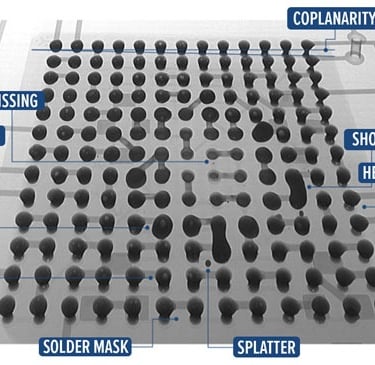 BGA, QFN, LGA: Phát hiện sai lệch (misalignments), cầu hàn/chập mạch (solder bridges), đường kính bi, lỗi Head-in-Pillow (HiP), và lỗ rỗng (voids).