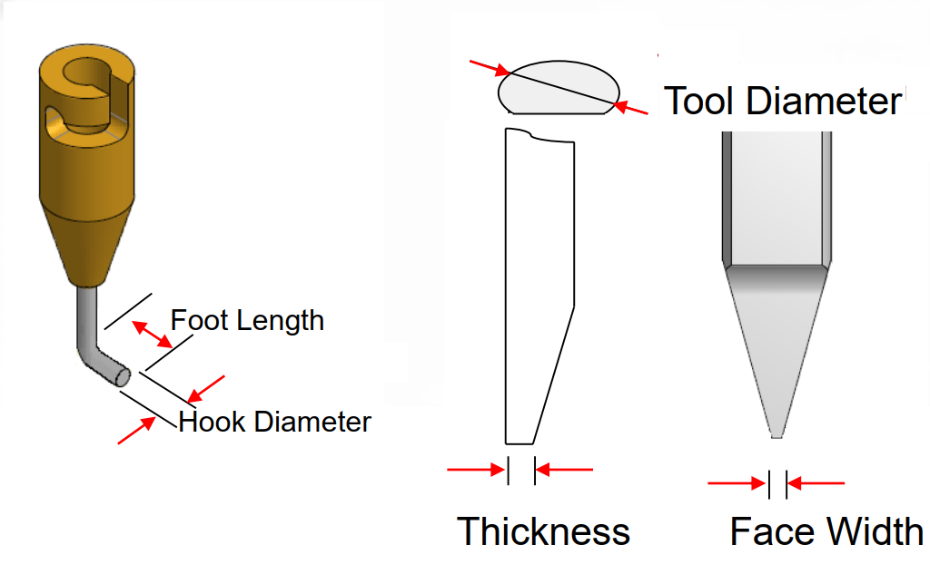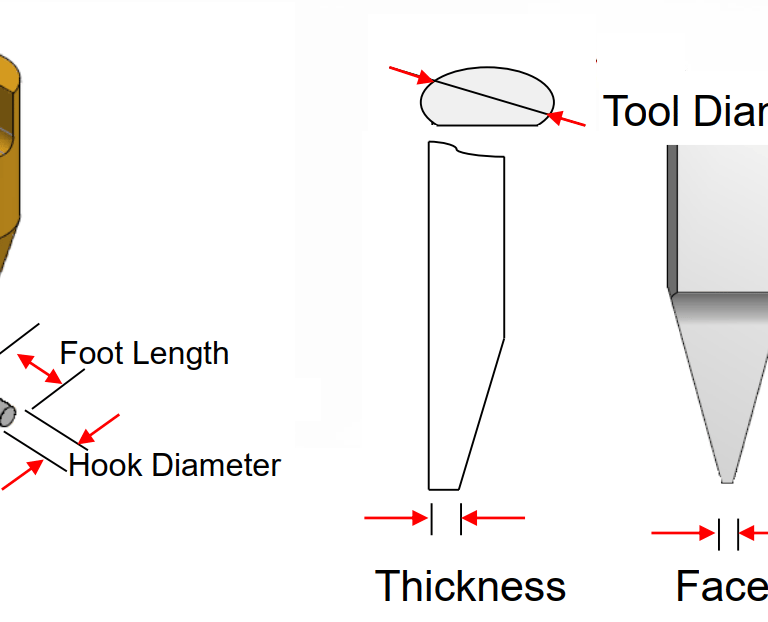 Foot Width: Bề rộng chân đẩy (đối với foot dẹt/chisel), xác định vùng cắt hiệu dụng theo phương shear. Thông số này chi phối cách phân bố lực lên bề mặt die hoặc linh kiện, độ ổn định cơ học khi shear lực lớn, và mức độ phù hợp với kích thước hình học của die, component hoặc zone shear.